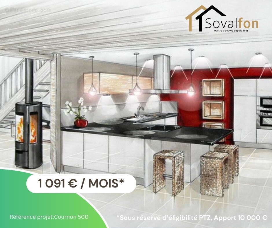 Sovalfon Maître d’œuvre depuis 2005 vous propose ce nouveau projet immobilier à Cournon. Nous vous présentons une maison individuelle type plain-pied de 87m2 habitables et son garage accolé de 17m2, sur un joli terrain de 500m2. Vous profitez d’un cadre agréable, à proximité [des écoles, commerces et services], ainsi que d’un accès rapide aux principaux axes routiers. Prestations incluses Finition intermédiaire Projet Idéal pour bricoleurs : Maitrise d’œuvre sur l’ensemble des lots chiffrés Ensemble du gros œuvre réalisé Réalisation partielle du second œuvre : plomberie, chape, mise en service du système de chauffage A réaliser par vos soins, avec le matériel fourni (inclus dans le prix) : plâtrerie, menuiseries intérieures, électricité (pieuvre électrique), pose des sols, peintures Non compris dans le prix : cuisine et aménagements extérieurs Agencement intérieur proposé : Une entrée ouvrant sur une pièce de vie de 42m2 avec cuisine ouverte 3 chambres de 10m250 avec placard Une salle de bain et Wc indépendant. Un accès au garage Informations techniques : Construction en maçonnerie traditionnelle (parpaing) Toiture 2 pans en tuiles terre cuite de couleur rouge unie Menuiseries monobloc Pvc et aluminium de couleur gris anthracite Ral 7016 Porte de garage sectionnelle motorisée Chauffage par pompe à chaleur air/air + ballon thermodynamique basse consommation Finition façade gratté Isolation performante et conforme à la norme RE2020 Branchements (Vrd) inclus jusqu'au coffret Charges non incluses : - Pose du lot placo (fourniture incluse) - Pose du lot électricité (fourniture incluse) - Pose des sols (fourniture incluse) - Pose des sanitaires (fourniture incluse) Ce projet est entièrement personnalisable : surface, aménagement intérieur, choix des finitions ou travaux que vous souhaitez réaliser vous-même. Infos et Rdv : Julien Tesi O6 Agence Sovalfon Aubière & Issoire