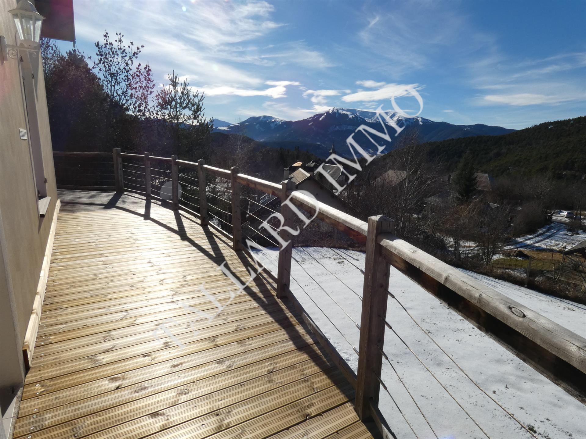 Coup de cœur pour cette confortable, lumineuse et performante villa d'architecte composée d'un T7 (environ 270m2 habitables), d'un T3 (environ 60m2) et de dépendances (environ 90m2 de garages) sur plus 3000 m2 de terrain, dans un très bel environnement à 1200 m d'altitude, offrant un magnifique panorama, à 5 mn des pistes de ski. En rez-de-chaussée de plain-pied, un grand hall d'entrée avec placards donne accès au T7 composé d'une vaste pièce de vie (plus de 60m2) avec plafond cathédrale, baignée de soleil en exposition sud, donnant sur terrasses avec pergolas et jardin. Sur le même niveau : suite parentale avec salle de bain / douche et dressing, donnant sur la terrasse sud, deux chambres dont une avec terrasse, salle de bains, wc, buanderie. Au-Dessus, en mezzanine accueillant un charmant coin salon : 2 chambres et 2 bureaux, salle d'eau avec wc. Au rez de jardin : salle de billard, cave à vin, buanderie et un bel appartement indépendant de plus de 60 m2 (vendu aménagé, équipé et meublé) donnant sur terrasse couverte et jardin. Environ 140m2 de terrasses au total, en Sud et Ouest, pour profiter du calme, du soleil et de la vue sur les montagnes ! 3 garages et une aire de stationnement pour plusieurs véhicules et camping-car complètent cette maison bioclimatique (isolation intérieure et extérieure, consommation énergétique couverte à 80 % par une installation photovoltaïque et un puits canadien (facture mensuelle moyenne d'énergie : 80 €)), anti-sismique, adaptée Pmr (maison construite autour d'une trémie centrale permettant la mise en place d'un ascenseur). Un bien rare aux très belles prestations à 20 mn du lac de Serre Ponçon et 40 mn de Tallard et de l'autoroute A 51, à saisir en exclusivité dans votre agence Tallard Immo ! Annonce proposée par Nathalie Pons agent commercial Rsac Gap 881 252 274 0017. Avantage fiscal : Pas de frais de notaires sur nos honoraires volontairement déclarés à la charge de l'acquéreur.