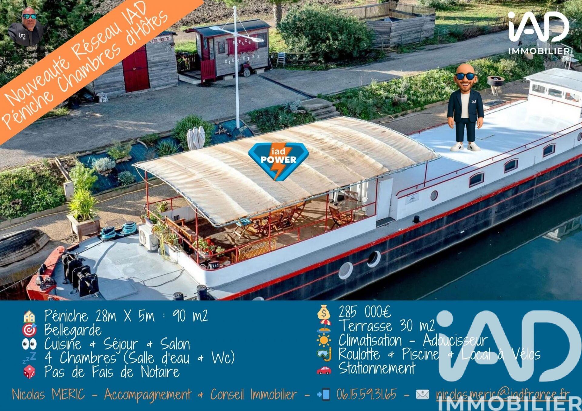 Iad France - Nicolas Meric vous propose : Bellegarde – Péniche de 90 m² (environ) - Terrasse de 30 m² (environ) offrant un style de vie unique et atypique ! Une péniche à usage d’habitation et / ou de chambres d’hôtes au coeur d'une région touristique du sud de la France, le Gard. Elle est amarrée dans un port propre et tranquille avec un emplacement renouvelable tous les 5 ans et s’articule de la façon suivante : ✅ Une partie « Jour » : Un salon propice à la détente, une pièce de vie avec une cuisine ouverte et une buanderie. ✅ Une partie « Nuit » : 4 Chambres avec salle d'eau et Wc. ✅ Sur le pont : Place à la détente avec cette « terrasse » protégée d'un taud permettant d'offrir les petits déjeuners, reps ou apéros avec une vue agréable. ✅ Équipements : Internet Adsl, climatisation, adoucisseur, système de fosse septique. Reliée au réseau edf et à l’eau de la ville actuellement. Elle possède également une cuve d’eau en inox de 2000L, une cuve à gasoil de 1000L ainsi qu'un groupe électrogène. Pas de propulseur d'étrave. ✅ Petit plus : Sur le quai à proximité de la péniche, vous aurez accès à une piscine, un local à vélos et une roulotte dédiée à l’espace massage (en supplément à négocier). ✅ Un espace stationnement. ✅ Divers : Dimensions : 28,51 m X 5,05 m • Frais d'appontement : 4900€ / An renouvelable tous les 5 ans • Pas de frais de notaire / Transaction simplifiée ou chez un avocat • Pas de taxes foncières • Péniche Freycinet raccourcie • Vérification de la péniche tous les 10 ans • Plan de sondage en 2020. • La péniche possède le permis de navigation communautaire et un Cot en règle de 2021 (valable jusqu’en 2031). ✅ Profitez de cette opportunité rare pour vivre dans un lieu hors du commun, en harmonie avec la nature tout en restant proche des commodités. ✅ Disponible 7J / 7 de 08H00 à 20H00 ! ✅ Chers confrères, je suis ouvert à l'inter-agence, n'hésitez pas à proposer à vos clients et à me ! ✅ Chers acquéreurs, ne passez pas à côté d'une si belle occasion. Je vous accompagne dès votre appel dans toutes les démarches, du début à la fin. Je peux également vous mettre en relation avec une courtière expérimentée et efficace. Honoraires d'agence à la charge du vendeur. Bien non soumis au Dpe. Les informations sur les risques auxquels ce bien est exposé, y compris l'obligation légale de débroussaillement, sont disponibles sur le site Géorisques : La présente annonce immobilière a été rédigée sous la responsabilité éditoriale de M Nicolas Meric mandataire indépendant en immobilier (sans détention de fonds), agent commercial de la Sas France immatriculé au Rsac de Nimes sous le numéro , titulaire de la carte de démarchage immobilier pour le compte de la société France SAS.Informations Loi Alur : Honoraires charge vendeur. (Gedeon )