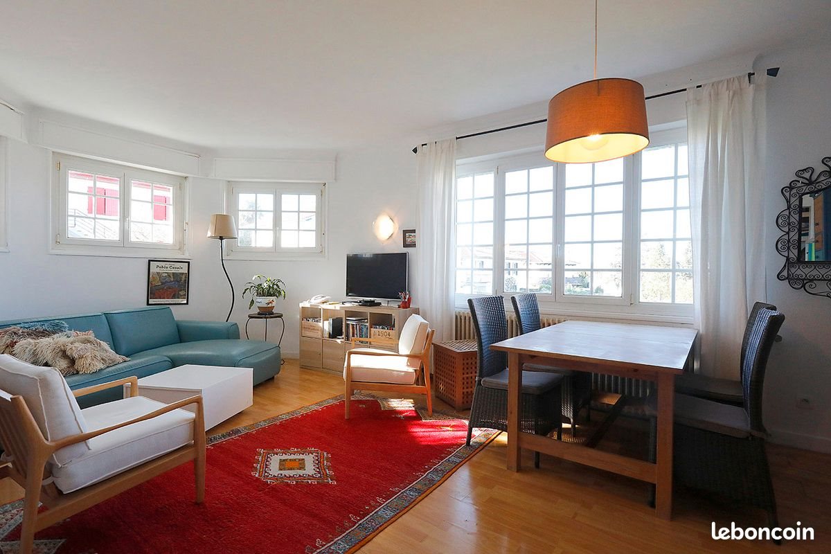 Hendaye proche plage appartement de plain pied 4 pièces offrant un cadre de vie unique en rez de jardin. Situé dans un secteur pavillonnaire au calme et en parfait état, d'une superficie de 96 m² avec jardin de 419m², l'appartement comprend une véranda, une cuisine équipée, un séjour-salle à manger, une salle d'eau avec lavabo double vasque et Wc, deux chambres avec placards et une chambre plus grande avec rangement et coin bureau.