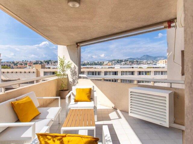 Nice Acropolis, 5 pièces 5ème étage ascenseur avec 2 belles terrasses Nice Centre / Riquier : À 2 pas de toutes commodités, Carrefour Tnl, commerces, écoles, tramway et gare, au 5ème étage d'un immeuble de standing construit en 1991 et offrant des prestations ...