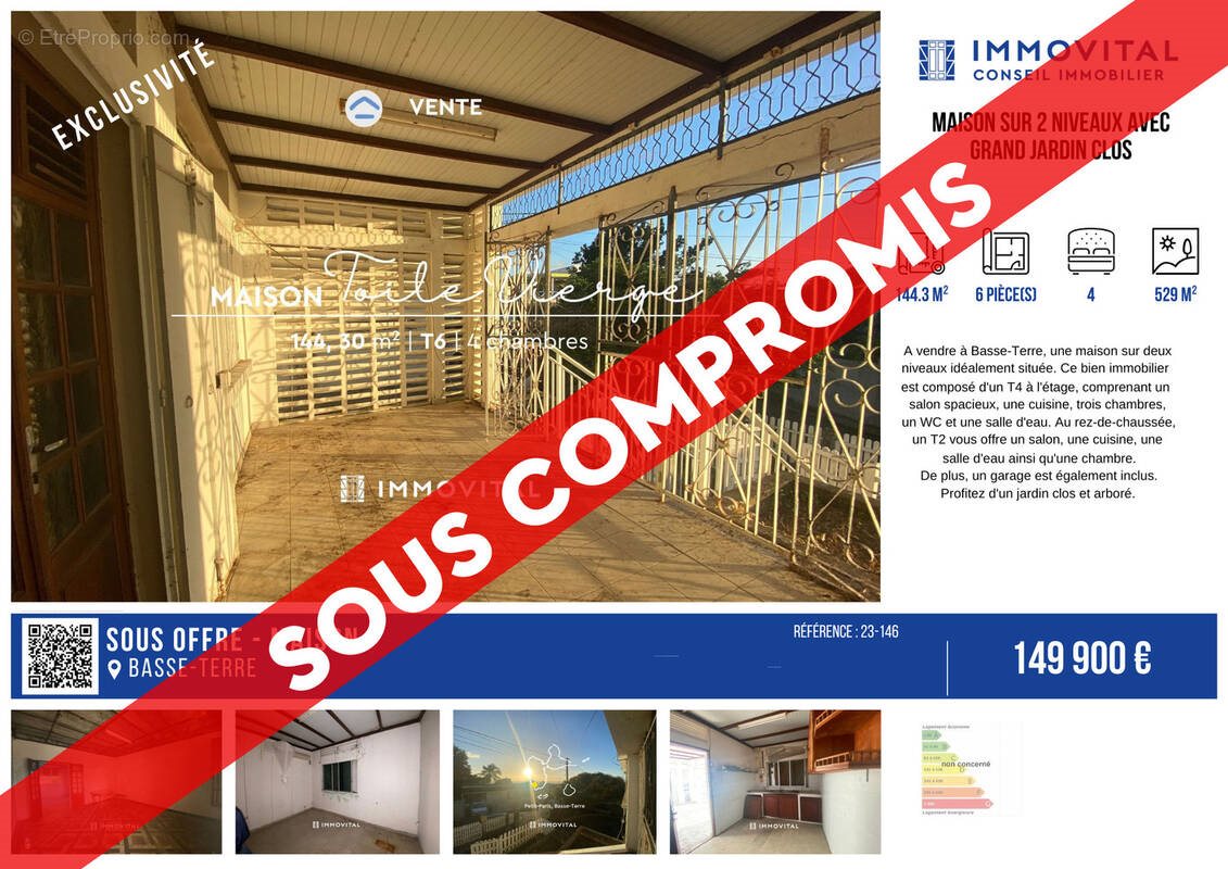 A vendre à Basse-Terre, une maison sur deux niveaux idéalement située. Ce bien immobilier est composé d'un T4 à l'étage, comprenant un salon spacieux, une cuisine, trois chambres, un Wc et une salle d'eau. Au rez-de-chaussée, un T2 vous offre un salon, une cuisine, une salle d'eau ainsi qu'une chambre. De plus, un garage est également inclus. Profitez d'un jardin clos et arboré. Le prix attractif de 149 900€ saura séduire les acquéreurs en quête d'une belle opportunité immobilière. Cependant, veuillez noter que des travaux important sont à prévoir afin de mettre cette maison à votre goût et en adéquation avec vos besoins. Pour plus d'informations ou pour organiser une visite, n'hésitez pas à nous au plus vite au [Coordonnées masquées]. Ce bien vous est proposé par Immovital Basse-Terre également présent à Jarry, Bouillante et au Moule.
