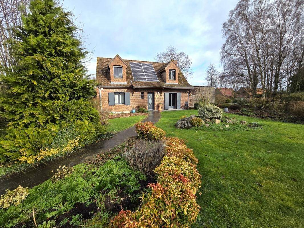 15 Min Cambrai Axe CAMBRAI/DOUAI Superbe pavillon individuel briques de 2001 offrant 146m² habitables bâti sur sous sol complet et 2500m² de terrain clos comprenant: - au rez-de-chaussée: hall d'entrée et couloir, immense pièce de vie ouverte 61m² (cuisine équipée Cuisinella 20m² avec coin repas ilôt central, salle à manger 17m² avec cheminée insert bois, salon 24m²), 2 grandes chambres 14m² et 11m², spacieuse salle de douche 13m² (avec double vasque, douche italienne et placards intégrés Mobalpa), Wc indépendants - à l'étage dans combles aménagés: 2 belles chambres 24m² et 21m² !! Portail, descente macadam pour sous sol, jardin clos paysagé typé parc de 1900m² en tout avec essences d'arbres diverses (950m² sur la façade et 950m² sur l'arrière). Sur l'arrière, terrasse carrelée avec pergola Iverco donnant sur piscine enterrée 40m² (9,5m x 4,5m) entourée d'une terrasse pavée, pool house et pompe à chaleur pour chauffer l'eau. Sous sol complet 80m² composé d'un garage double 40m² avec porte sectionnelle motorisée, atelier 15m² et coin stockage 25m². Toiture tuiles, menuiseries double vitrage bois avec volets battants isolés alu Iverco, chauffages électriques économiques à inertie sèche, ballon thermodynamique pour production eau chaude, tout à l'égoût. Cuve de récupération des eaux de pluie 10 000L connectée au Wc, lave linge et les robinets extérieurs pour l'arrosage du jardin par pompe de relevage, panneaux photovoltaïques avec contrat assurant une rente de 900€/an pour encore 5 ans! Excellent Dpe Energie C/150 et Ges A/5, Taxe foncière 1420€. Habitable Plain Pied !! 4 Chambres Et Grand Terrain Idéal Famille !! Idéal Amoureux De La Nature !! Veritable Havre De Paix !! Contactez votre conseiller Raymond Aso Mandat n°8068