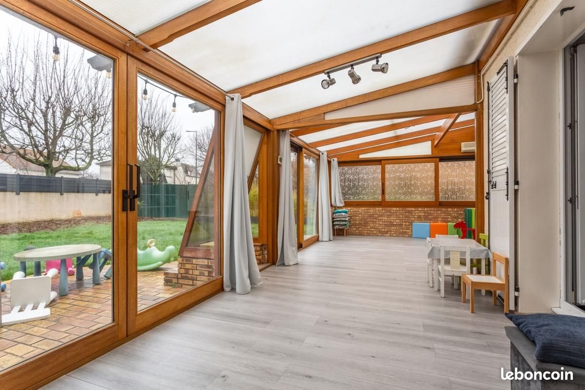 Idéalement située sur le plateau de Crosne, à proximité des Ecoles et des Commerces et à moins de 10 min en bus de la GARE. Maison Individuelle construite en 1982 et d'environ 150 m² habitable, avec Garage, et Veranda d'environ 35 m², le tout sur une parcelle de 491 m². Ce bien se compose d'une entrée donnant sur un séjour cathédrale de 32 m² avec poêle (récent) et une mezzanine de 14 m² (devenue une 4e chambre), cuisine ouverte aménagée et équipée récente, buanderie, cave à vins, garage et Wc séparés. A l'étage : un palier avec rangements, 3 chambres, salle de bains, salle d'eau et Wc séparés. Chaudière Gaz - Clim dans la véranda - Fenêtres double vitrage - Combles aménageables - Fibre optique Très bon état général Référence agence : 97