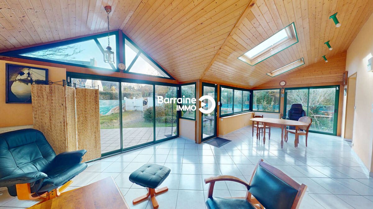 Brest Saint-Pierre - Cavale Blanche / Réf : Si00463-Ds A vendre à Brest plus précisément dans le quartier de Saint-Pierre proche de Plouzané et de ses plages, une élégante maison de maître construite en 1933. Elle offre 188,20 m² habitables répartis en 8 pièces, 5 grandes chambres dont une en enfilade pouvant faire office de bureau ou encore de dressing. Le tout est implanté sur un terrain de 403 m² et bénéficie d'une exposition plein sud. La pièce de vie, composée d'une véranda isolée et chauffée prolongée par un salon-séjour, offre près de 65 m² baignés de lumière. Cette maison au charme des années 30, avec sa belle hauteur sous plafond, demande un léger rafraîchissement, vous laissant la possibilité d'adapter les espaces à vos envies. La cuisine indépendante est pratique, fonctionnelle dispose d'un four à pizza, d'une arrière cuisine - buanderie et d'un accès direct au garage. Le chauffage et l'eau chaude sont assurés par une chaudière au gaz installée en 2023. A l'extérieur, vous profiterez d'un garage de 25 m² avec mezzanine ainsi que d'un espace de stationnement pouvant accueillir environ trois véhicules. Une terrasse complète l'ensemble pour les moments de détente. Le bien dispose également de fenêtres en Pvc double vitrage, de la fibre, d'une Vmc et d'un système d'alarme. Idéalement située, la maison se trouve à une minute à pied de l'arrêt de tramway Coat Tan, et à deux minutes de l'école primaire Jean de La Fontaine. Les commerces sont à seulement 200 mètres et plusieurs parcs à proximité permettent de profiter facilement de la nature. Une belle opportunité d'acquérir une maison de caractère à Brest. Pour plus d'informations ou organiser une visite, contactez l'agence Barraine Immo Brest ? Siam. (4.76 % honoraires Ttc à la charge de l'acquéreur.)