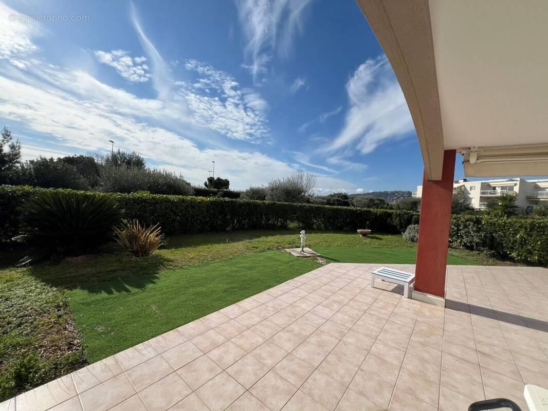 Juan Flore /Superbe Rdj Terrasse + Jardin : 150m² Découvrez votre futur appartement de rêve à Juan Les Pins, dans une résidence de prestige à seulement 50m des plages. Vous profiterez d'une grande piscine et d'un très joli parc arboré aux essences méditerranéennes ainsi qu'un grand parking pour vos invités. Ce magnifique 2 pièces en Rdj bénéficie d'un extérieur de 150 m² et d'une très belle exposition Sud et d'un ensoleillement continu., L'appartement est sans vis à vis et au calme et donne sur un magnifique parc. Il comprend une entrée, une cuisine indépendante, une belle pièce de vie, une chambre avec placard, salle de bains et Wc séparés. Sa profonde terrasse et son jardin vous permettront de passer de bons moments entre amis ou en famille. Il est vendu avec un garage, et une cave . Situé à proximité de la Mer, des commerces, des restaurants et des transports , tout est à deux pas. Un cadre de vie exceptionnel vous attend!