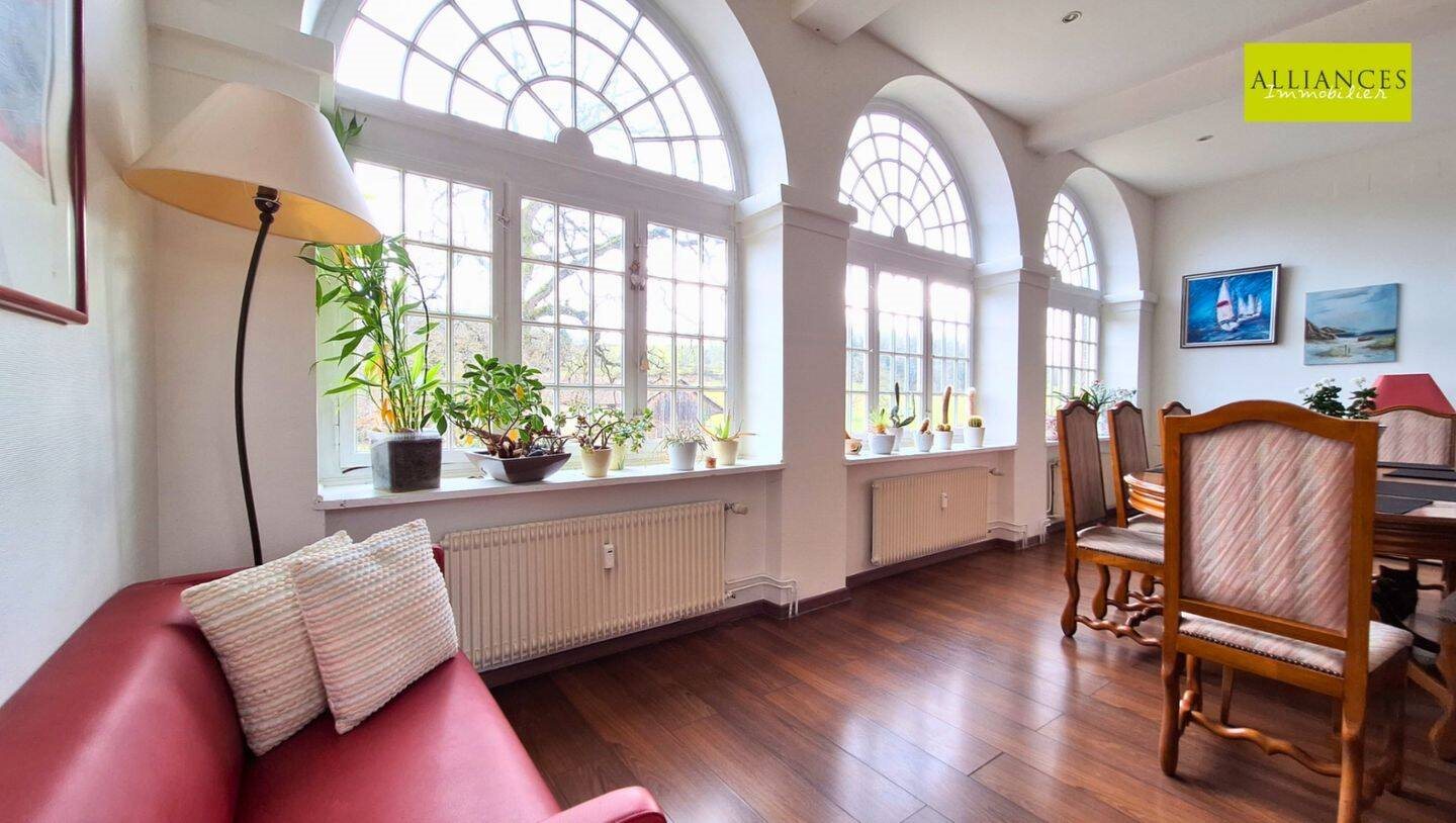 A l'orée des champs Découvrez ce superbe appartement de 5 pièces situé au premier étage d'une copropriété dotant de beaucoup de charme à Heidwiller . Avec une surface habitable de 130.63 m2, il offre une entrée accueillante, un Wc avec meuble vasque, un très vaste séjour lumineux, une cuisine équipée moderne, 1 chambre avec sa salle de bain composée d'un meuble vasque, WC,baignoire ronde, douche, une chambre avec meuble vasque, un bureau. Idéal pour une famille à la recherche d'espace et de confort, cet appartement bénéficie d'un emplacement privilégié au calme. 1 grande cave de 10.84 m2 + 1 atelier de 16.79m2 avec fenêtre complètent ce bien. Stationnement commun à l'intérieur du bâtiment ainsi qu'à l'extérieur. Jardin commun avec emplacement à usage privatif L'appartement est actuellement loué au loyer de 700€ + 150€ de charges , il peut être vendu loué ou libre d'occupant Pour tout renseignement, Céline au [Coordonnées masquées]
