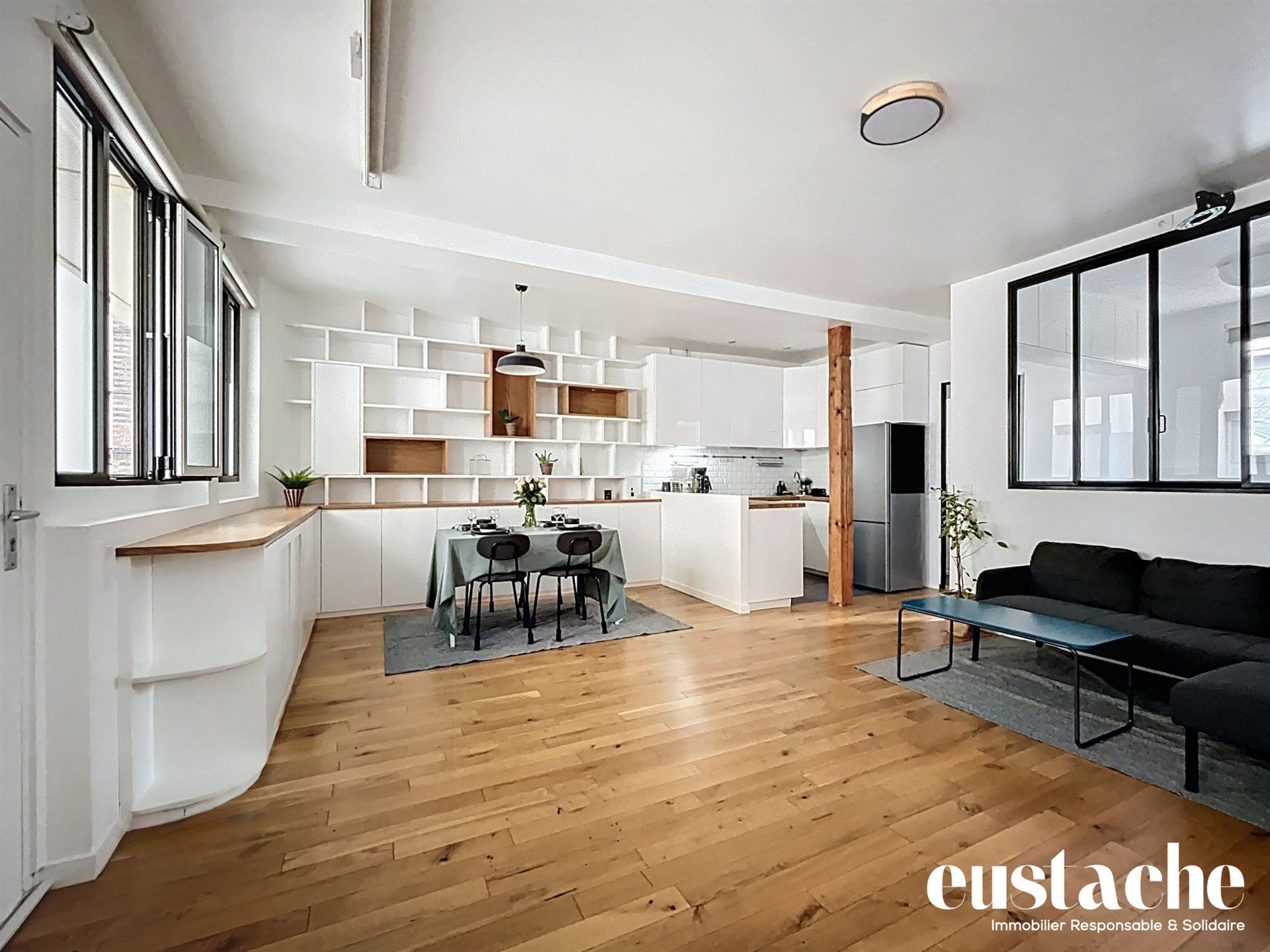 Paris 11ème - Quartier Square Gardette / Chemin vert - Appartement traversant style loft, 3 pièces de 64.83 m² Carrez -A proximité des métros Saint-Maur et Voltaire, dans un immeuble ancien en fond de cour, au premier étage sans ascenseur, Eustache a le plaisir de vous présenter sa dernière nouveauté !Entièrement rénové par architecte, cet appartement à usage mixte se compose comme suit : une entrée sur un vaste séjour / salle à manger avec cuisine ouverte aménagée et équipée, puis une première chambre, une salle de bain avec Wc, et une suite parentale avec dressing et salle d’eau avec WC.Un débarras de 3 m² au deuxième étage du bâtiment adjacent complète ce bien.Cet appartement saura vous séduire par son emplacement recherché, sa luminosité grâce à son côté traversant, son calme total en donnant sur deux cours intérieures, son aménagement réalisé sur mesure et entièrement optimisé, ses rénovations récentes aux prestations de qualité, ainsi que son excellent état général !Pour plus d'informations ou une visite, contactez Justine !