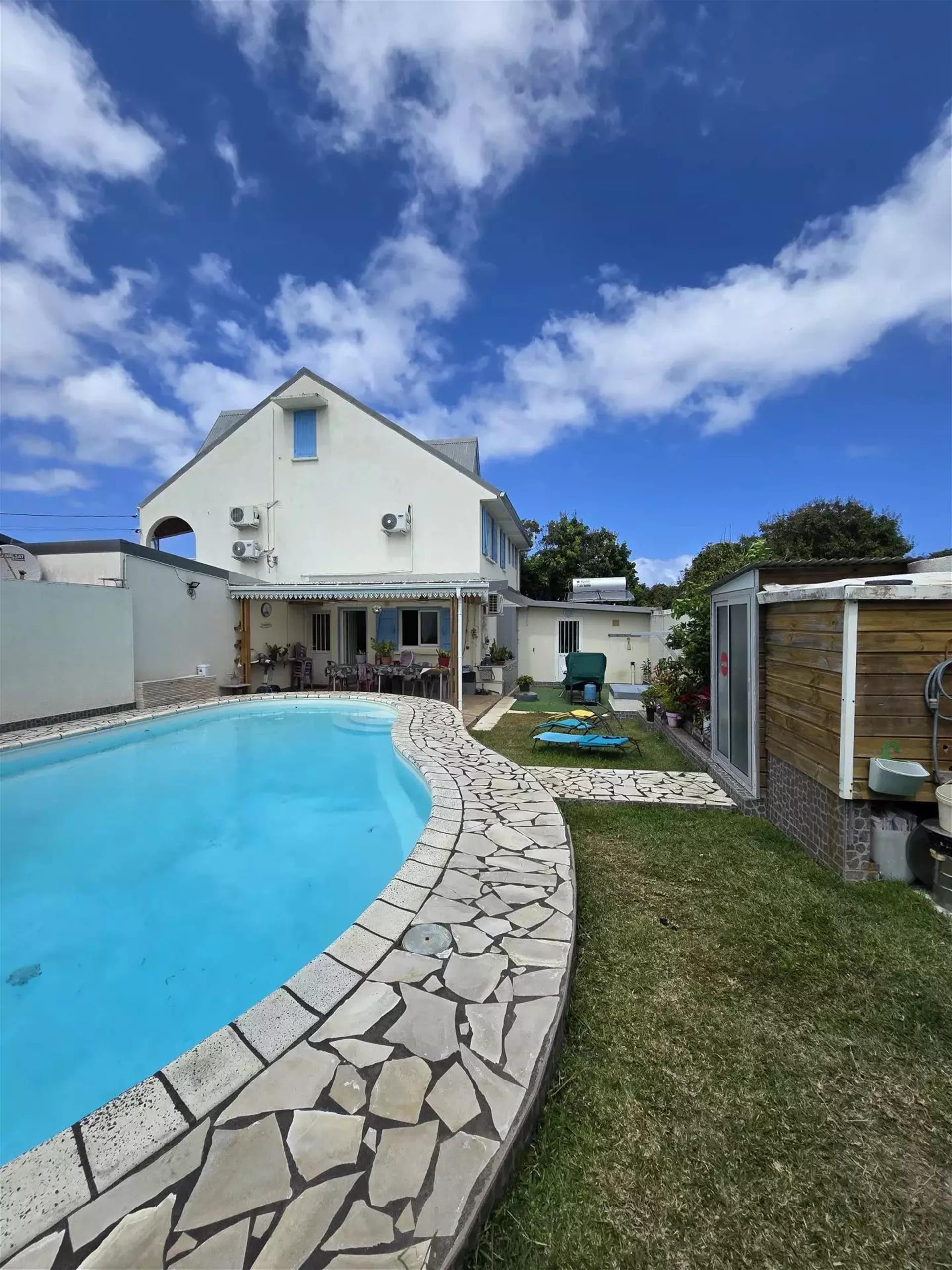 À Saint-Joseph, dans le secteur du Butor, cette villa de type F6 S’étend sur trois niveaux et sur un terrain de 456 m², avec ses 197 m² habitables, elle offre des volumes confortables et une organisation qui s’adapte à différents modes de vie. La maison propose cinq chambres, permettant d’accueillir famille et invités en toute aisance. Les combles aménagés ajoutent une surface supplémentaire qui pourra être transformée selon vos envies. Une buanderie et deux balcons complètent les espaces intérieurs. L’extérieur est conçu pour profiter pleinement du climat, une piscine au sel de 90 m³ occupe une belle place au cœur du jardin et s’accompagne d’un espace convivial où l’on retrouve une cuisine extérieure , parfaite pour partager des repas en plein air. Le terrain offre également la possibilité de stationner plusieurs véhicules en toute sécurité et d'un garage. Côté confort, la maison est équipée de la climatisation, de la fibre optique, de la domotique, ainsi que d’un portail motorisé et d’un interphone. Ces équipements apportent praticité et sérénité à la vie quotidienne. Située dans un environnement calme tout en restant proche des commodités, cette villa allie espace intérieur, confort et cadre agréable. Elle conviendra à ceux qui recherchent une maison fonctionnelle, et adaptée à différents projets de vie. La taxe foncière s'élève à 2805€.