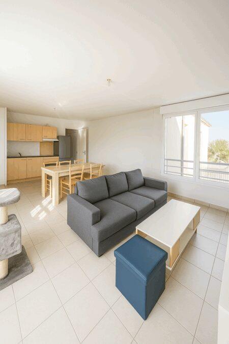 Vendu Libre De Toute Occupation Venez découvrir ce bel appartement deux pièces d’environ 48m2 au 1er étage d’une résidence récente et sécurisée, situé à seulement deux pas de la gare de Pons. Ideal pour de l’investissement locatif ou premier achat. Cet appartement est composé d’une entrée avec placard, d’une cuisine semi-équipée ouverte sur la pièce de vie, d’une grande chambre avec placard intégré ainsi qu’une salle de bain et un Wc séparé. Vous bénéficierez également d’une place de stationnement extérieure. Le bien est soumis au statut de la copropriété. Loyer mensuel hors charges : 391,99 euros et 50 euros de provisions pour charges soit un loyer charges comprises de 441,99 euros/ mois. Charges mensuelles de copropriété : 79,49 euros Taxe foncière : 701 euros Fcpi Immobilier – photos retouchées en respectant la structure de l’appartement