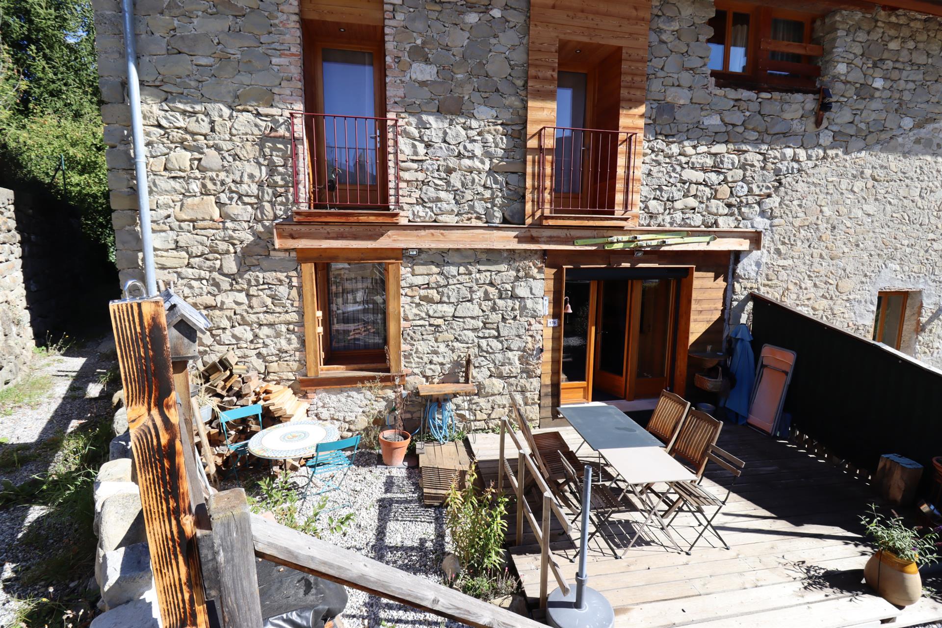 Sous-Offre - Visites Suspendues Aux abords du village de Beauvezer, maison de village de 110 m2 mitoyenne sur 1 côté avec jardin et grande terrasse de 15 m2 exposée plein sud. Vous apprécierez le charme de cette maison entièrement rénovée, idéale pour une utilisation en couple au rdc ou en famille avec possibilité de 10 couchages. Au rdc, de plein pied avec le jardin et la terrasse, la cuisine toute équipée est ouverte sur un bel espace séjour/salon. Le rdc se complète d'une chambre indépendante et d'une belle salle de douche/wc avec un placard buanderie. A l'étage, vous découvrez un grand espace de 45 m2, organisée avec 2 mezzanines pour lit 140, 1 espace nuit lit 180 fermé par un rideau et des canapés lits gigogne. Ce bel espace permet à chacun de se créer son espace de jeu ou de lecture en journée. L'étage se complète d'un espace kitchennette, d'une salle de douche/Wc et d'une pièce de rangement fermée. Si on le souhaite, l'accès à l'étage peut se faire par le côté de la maison de manière indépendante. A l'arrière, la maison dispose d'un espace de 30 m2 où vous pourrez stocker du matériel, vélos ou skis. L'accès à la maison se fait par une allée de 10m de long où l'on peut garer les voitures. La maison a été rénovée par des professionnels en respectant les normes actuelles de plancher, d'isolation, de vitrage et de toiture isolée. La classe Dpe C est la lettre quasi la plus haute atteignable à nos altitudes. L'électricité est aux normes. Vous apprécierez la décoration montagne de cette maison et le calme de son environnement. L'agencement du terrain permet de stationner 2 voitures et si besoin il y a un petit parking à proximité. Si aujourd'hui, la maison ne dispose pas de cave ou de rangement extérieur pour des vélos par exemple, un local peut s'envisager sur l'arrière de la maison. La maison est située à 3mn à pied des commerces du village et de la maison de pays des produits régionaux. Beauvezer est à 7mn de Colmars et son marché bi-hebdomadaire, 15 mn d'Allos et 20 mn de la station de ski de La Foux d'Allos. Vous êtes aux portes du Parc du Mercantour pour ballader en famille, partir en randonnée plus engagée dans les Gorges de St Pierre ou en vélo dans le Col des Champs et le Col d'Allos.