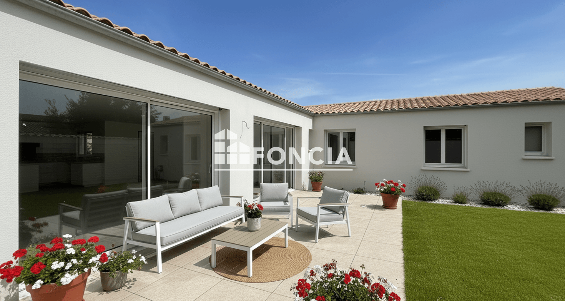 L’agence Foncia Achat / Vente de La Rochelle Dupaty vous propose le bien immobilier ci-dessous : Au calme, dans programme neuf de cinq lots, belle maison neuve de plain-pied en cours de construction comprenant : espace entrée avec placard, vaste séjour ouvrant sur terrasse et jardin au sud, cuisine ouverte équipée, 3 chambres avec placards, 2 salles d'eau, 2 wc, buanderie, garage et stationnement privatif, prestations de qualité, RE 2020, accessibilité PMR, aménagement des extérieurs non contractuels. Programme de 2 maisons de plain-pied et de 3 maisons à étage.