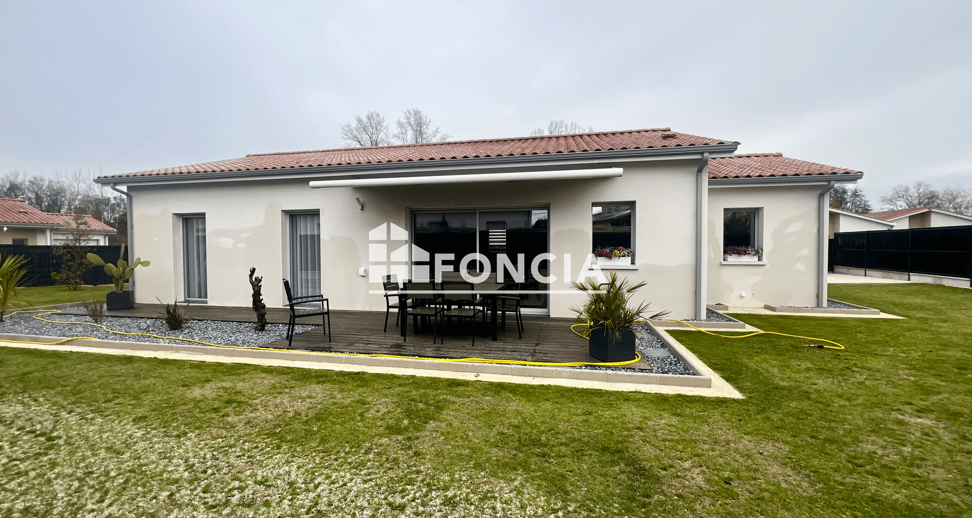 Idéalement située dans le secteur prisé « Le Paradis » sur la commune de Vayres, cette maison récente a tout pour séduire. Elle offre un cadre de vie à la fois agréable, fonctionnel et paisible, parfaitement adapté à une résidence principale familiale. De plain-pied, cette maison développe 92 m² habitables et se compose de 4 pièces dont 3 chambres, permettant une organisation fluide entre les espaces de vie et de nuit. Les volumes sont harmonieusement répartis pour un confort optimal au quotidien, avec un soin tout particulier apporté au choix des matériaux et à la qualité des finitions. Édifiée sur une parcelle de 578 m², la propriété bénéficie d’un jardin privatif piscinable, idéal pour profiter des beaux jours. Vous y trouverez plusieurs espaces dédiés à la détente et aux repas en extérieur, ainsi qu’une zone de stationnement à l’avant. Un garage attenant complété par un espace buanderie aménagé vient parfaire l’ensemble, offrant un véritable atout en matière de rangement et de praticité. Atout majeur : construction récente (2022) bénéficiant encore des garanties décennale et dommage-ouvrage, offrant à l’acquéreur une sécurité juridique et financière rare ainsi qu’une sérénité totale pour les années à venir. Implantée dans un environnement résidentiel calme, la maison profite d’un cadre de vie serein tout en restant proche des commodités, des axes de circulation et des services de la commune de Vayres. Un bien idéal pour une famille en quête de confort ou pour un acquéreur souhaitant investir dans un secteur recherché.