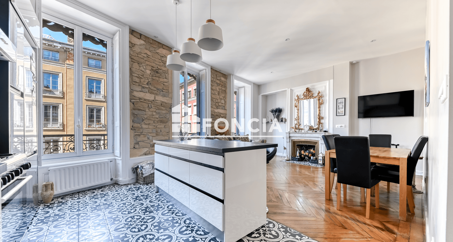 Sur les pentes de la Croix-Rousse, entre la place Sathonay et le Jardin des Plantes, nous vous proposons cet appartement au 4ème avec ascenseur. Idéalement distribué, il est composé comme suit : - Un vaste séjour avec cuisine ouverte, à l 'Ouest - Une chambre avec placards, au Nord - Une cabine - Une salle de bains - Un WC indépendant Lumineux, il a fait l’objet d’une rénovation soignée qui a su préserver son caractère. La pièce de vie, véritable cœur du lieu, met en valeur les pierres apparentes, la cheminée et les volumes, tout en intégrant des équipements contemporains comme une cuisine équipée avec îlot, idéal pour savourer son café, les yeux rivés sur Fourvière. Le coin nuit se compose d’une chambre exposée nord, offrant une vue plongeante et immersive sur le Jardin des Plantes. Elle dispose de placards intégrés pour un rangement optimisé. Une pièce supplémentaire complète l’ensemble, idéale en bureau, dressing ou chambre d’appoint. Nous disposons enfin d'une salle de bain et d'un WC indépendant. Cave.