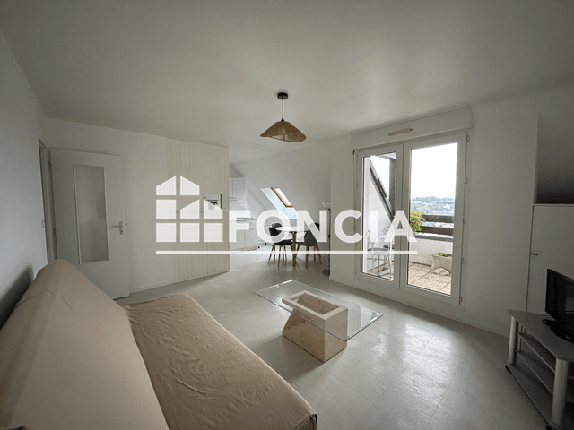 LOCATION MEUBLÉE A L'ANNEE PROCHE DE LA GARE D'AURAY - Appartement traversant de type 2, au 3ᵉ et dernier étage comprenant une entrée avec placard, une pièce de vie lumineuse avec une cuisine semi-ouverte, une chambre, une salle de bains. Surface loi carrez : 35,52m² et surface totale (avec sous-pente) : 41,93m²L'appartement comprend également un balcon orienté Sud, une cave en sous-sol et 2 emplacements de stationnement en extérieur. Disponible immédiatement !