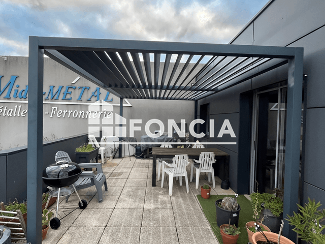 Appartement de type 2 bis au 1ᵉʳ et dernier étage en zone industrielle comprenant une cuisine aménagée donnant sur la pièce de vie, une salle d'eau, wc, une chambre et un bureau, une terrasse et une place de parking privative.