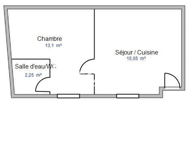 A deux pas du boulevard Amiral Courebt, un appartement de type deux au deuxième étage, comprenant : une entrée dans pièce de vie avec espace cuisine aménagé et équipé, une chambre et salle d'eau avec WC