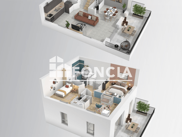 ECO QUARTIER DES MARAICHERS - Dans une résidence neuve de 2024, appartement DUPLEX 4 pièces au 2ᵉ et 3ᵉ étage avec entrée, séjour, cuisine aménagée et équipée et avec terrasse, trois chambres, une salle de bains, un WC.Une place de stationnement privative.Chauffage et eau chaude collectif urbain, inclus dans la provision sur charges.