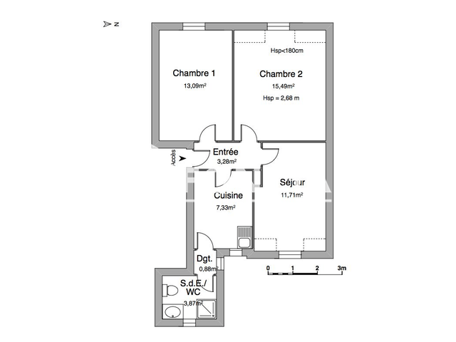 Un appartement de type F3 situé au 3ᵉ étage (lot n°7) comprenant : une entrée, un séjour, deux chambres, une cuisine, une salle de bains, un WC.