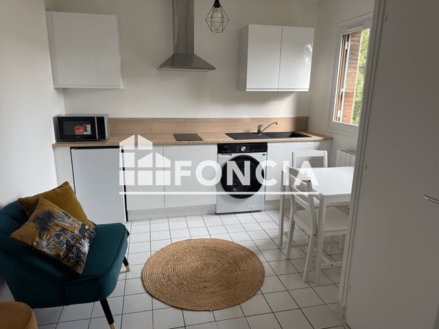 A louer sur la commune de Massieux, 55 chemin de Pré Blanc. Ce meublé vous offrira tout le confort nécessaire. Il dispose d'une jolie cuisine équipée ouverte sur le coin salle à manger. Le mobilier est moderne, vous bénéficierez d'une machine à laver, plaque, hotte, frigo. Une chambre avec rangements. Une salle d'eau. Libre immédiatement