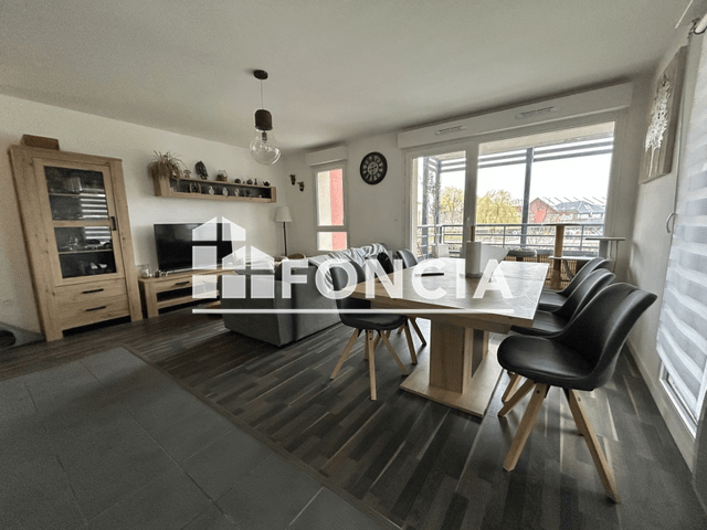 VUE DEÛLE. Type 3 meublé de 67 m² situé au 1ᵉʳ étage. Il se compose d'une entrée, un cellier avec le cumulus et un emplacement lave-linge, un séjour lumineux avec une cuisine équipée ouverte, un grand balcon d'angle vu Deûle, deux chambres, wc séparés et une salle de bain baignoire. Place de parking en sous-sol. Disponible au 30 MARS.