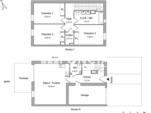 proche toutes commodités, dans une résidence neuve, une jolie villa sur 2 niveaux avec une terrasse, un jardin, un garage, 2 places de parking. une entrée, un séjour/cuisine, 3 chambres, un cellier, une salle de bains et 2 wc.