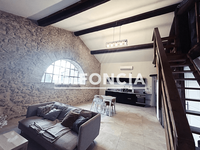 Superbe appartement T4 dans petite copropriété au calmeCet appartement comprend une entrée avec wc, une chambre, un grand séjour/cuisine avec clim réversible et cheminée, 3 chambres, une salle de bain, et des combles aménagées de 25 m2 en plus.Grand garage de 100 m2 avec porte de garage automatisée