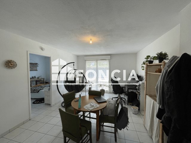 Appartement T2 au rez-de-chaussée d'une résidence sécurisée comprenant un séjour avec coin cuisine, une chambre, une salle de bains, une terrasse, une place de parking, double vitrage, chauffage électrique