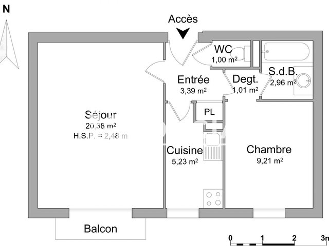Dans un quartier pavillonnaire à proximité du centre ville t2 exposé plein sud, séjour ouvrant sur loggia, cuisine, chambre, parking