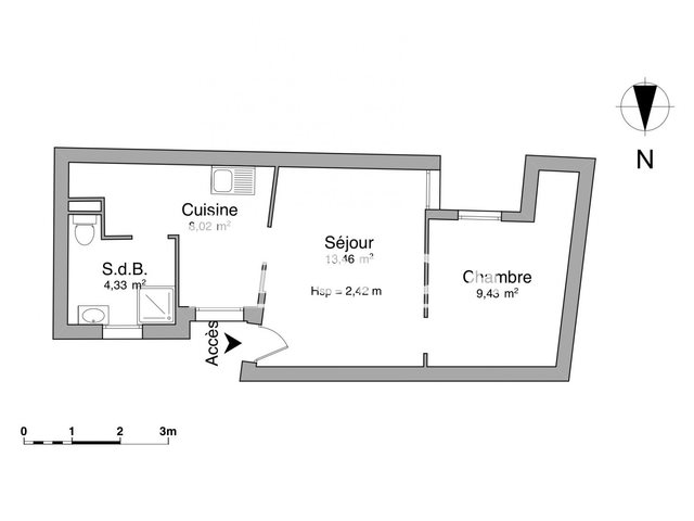 Dans un quartier calme en fond de cour, logement enttièrement rénové avec petit extérieur composé d'un séjour , d'une chambre, d'une cuisine aménagée et d'une salle d'eau avec wc.