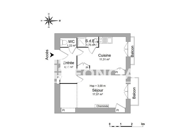 Hyper CENTREDans bel immeuble ancien, grand t1 avec cuisine séparée et une pièce principale, avec alcove, cheminée décorative salle d'eau,