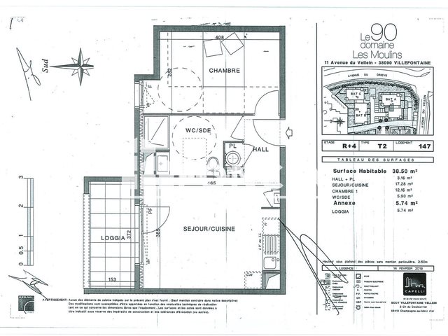 Proche axe autoroute et gare et commerces, dans résidence sécurisée et récente, appartement T2 de 38,50m², situé au 4ᵉ étage avec ascenseur, comprenant un séjour avec cuisine équipée donnant sur un balcon, une chambre et une salle d'eau avec WC.Un garage privatif au sous-sol.