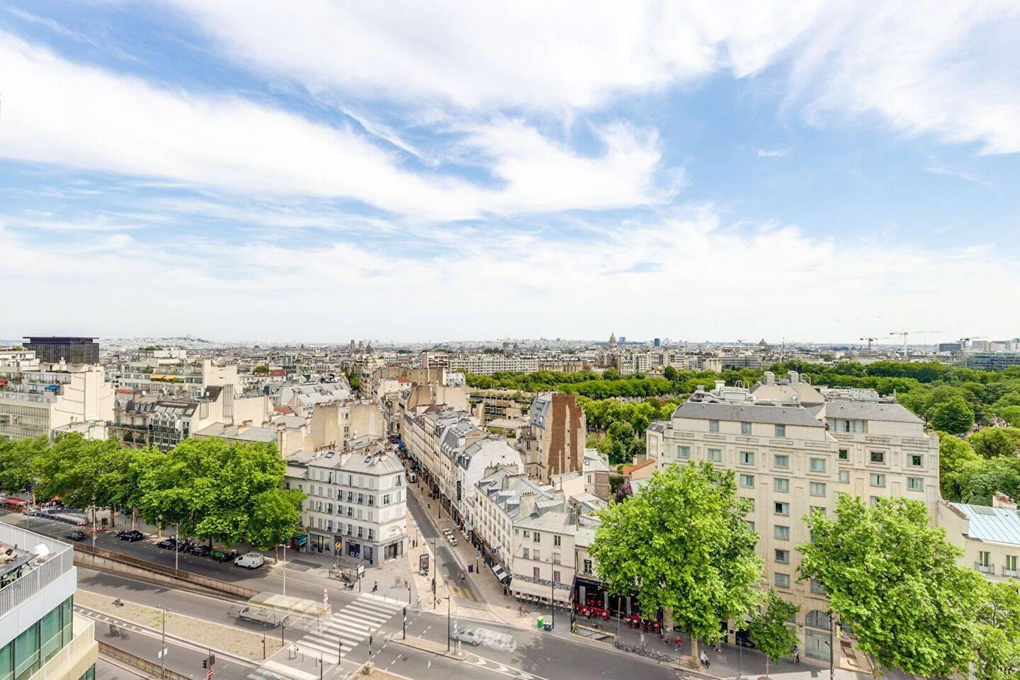 Situé dans un immeuble parfaitement entretenu et sécurisé avec gardien, Fredelion Paris 14 Alésia vous présente, en plein coeur du quartier animé de Montparnasse, au pied de la gare, des transports et des commerces, un duplex de 98m2 avec terrasse et vue exceptionnelle sur les monuments de Paris. Situé aux 12e et 13e étages avec ascenseurs, le bien comprend une entrée avec de nombreux rangements, un grand séjour exposé Est donnant sur une véranda aménagée en salle à manger de 16 m² ainsi qu'une terrasse de 20 m², une cuisine séparée équipée, et des Wc indépendants. Accessible par un escalier, le niveau supérieur se compose d'un dégagement avec placards, de deux chambres, d'une salle de bains et d'une salle d'eau. Vue dégagée, calme, luminosité. Appartement coup de coeur, à visiter sans tarder ! Une cave complète le bien. Un double box est disponible en Sus. (4.17 % d'honoraires Ttc à la charge de l'acquéreur.) Copropriété de 200 lots (Pas de procédure en cours). Charges annuelles : 4972.00 euros.