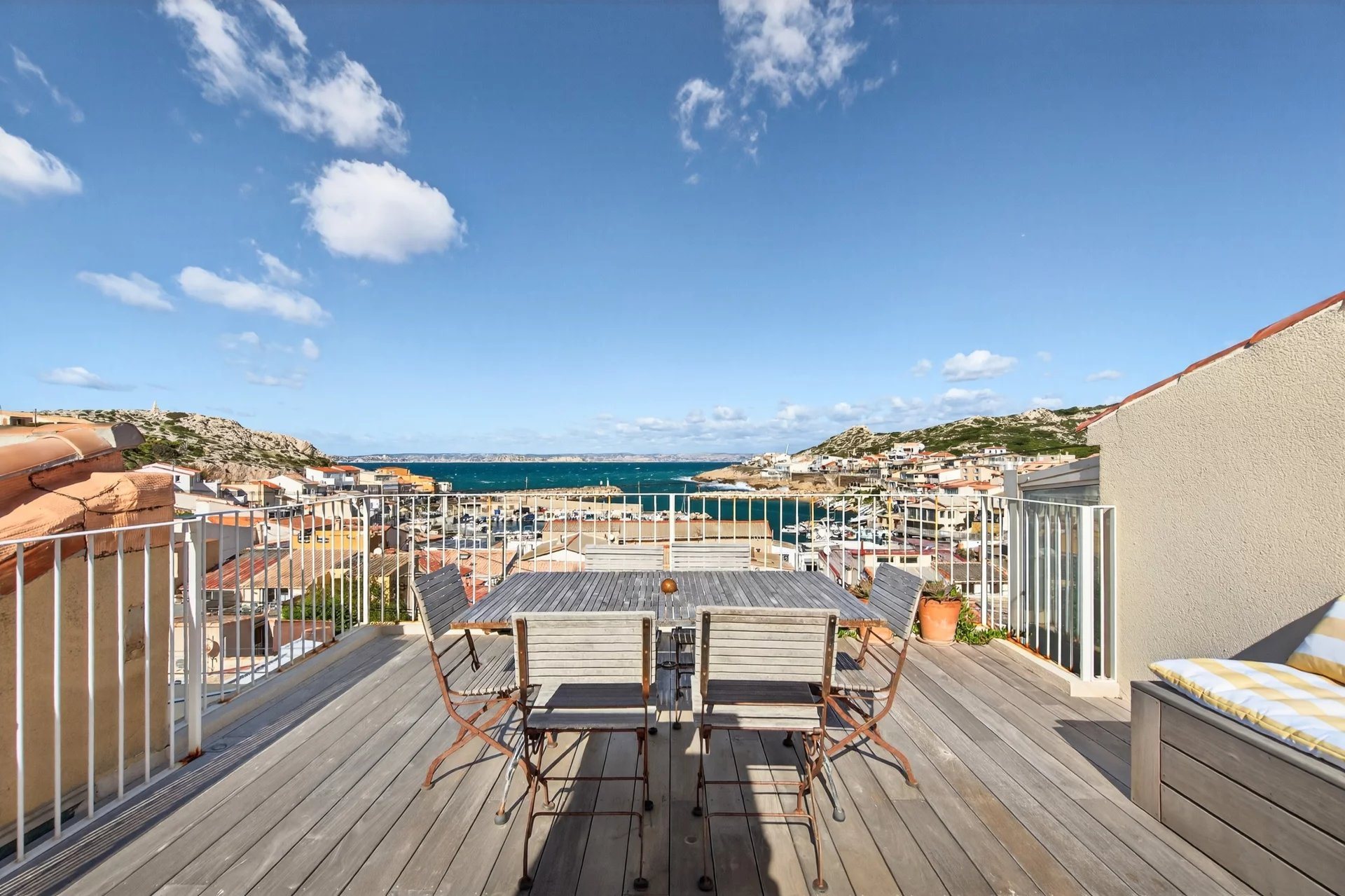 Marseille 8th a rare seafront gem, ideally located in the heart of the emblematic village of Les Goudes. Fully renovated with refined taste, this charming property perfectly combines elegance, comfort, and breathtaking panoramic views. This townhouse of approximately 100 m2 offers harmonious, light-filled volumes, enhanced by uninterrupted sea views and a privileged natural setting. The property features a bright and welcoming living area, a spacious and convivial kitchen, a wood-burning stove, a study space, and a sea-facing lounge. It offers two bedrooms and one shower room, including a beautiful master suite with sea view and its own private bathroom, finished to a high standard. The outdoor spaces are truly exceptional, ideal for enjoying sunsets over the Mediterranean and the port of Les Goudes. A fitted rooftop terrace provides the perfect setting for entertaining or relaxing moments. A patio terrace and an intimate, carefully landscaped garden complete this peaceful environment. This property embodies a true Mediterranean lifestyle between sea and hills. A rare home combining modern comfort with authentic charm, set within a preserved natural environment â?? it will appeal to lovers of exceptional properties seeking serenity. For added comfort, a garage completes the property, a genuine asset in this highly sought-after area. Full file and viewings available upon request. The 8th arrondissement of Marseille is one of the city’s most prestigious and sought-after residential districts, renowned for its refined atmosphere, coastal setting, and exceptional quality of life. Stretching from elegant urban avenues to the Mediterranean shoreline, it offers a harmonious blend of seaside tranquility and upscale city living, making it a prime address for those seeking space, light, and proximity to nature. Home to some of Marseille’s most desirable neighborhoods, the area is distinguished by its luxury residences, private villas, and green spaces such as Parc Borély. Residents enjoy immediate access to the beaches of Plages du Prado and the marina atmosphere of Pointe Rouge, along with fine dining, boutiques, and international schools. The 8th arrondissement embodies a lifestyle defined by elegance, leisure, and Mediterranean sophistication.