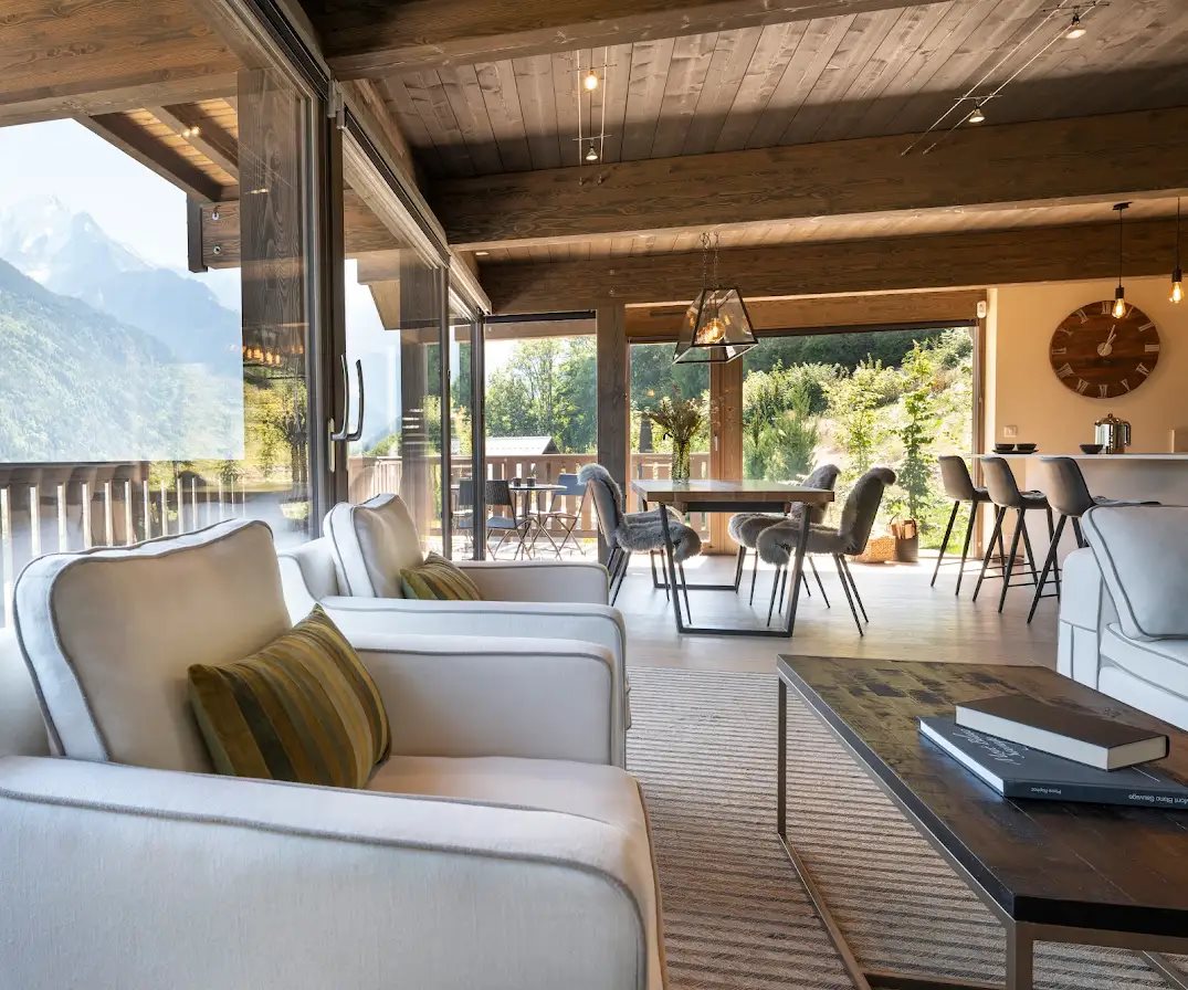 This contemporary 5-bedroom chalet is situated in an exceptional setting, within a secluded hamlet of five wooden chalets, offering ski-in/ski-out access to the “La Saint-Gervais” slope and direct access to the Evasion Mont-Blanc ski area. Boasting unobstructed views of the Mont Blanc massif, this three-story chalet, with a total surface area of approximately 205 m2 (189 m2 of living space), impresses with its generous proportions, high-quality materials, and post-and-beam construction by a renowned local builder. It comprises six bedrooms, two bathrooms, three shower rooms, a spacious living area opening onto a sheltered terrace and garden, as well as a sauna, a ski room, and a large, enclosed, motorized garage with direct access to the chalet. – Vat recovery possible – Reduced notary fees – Images are for illustrative purposes only.