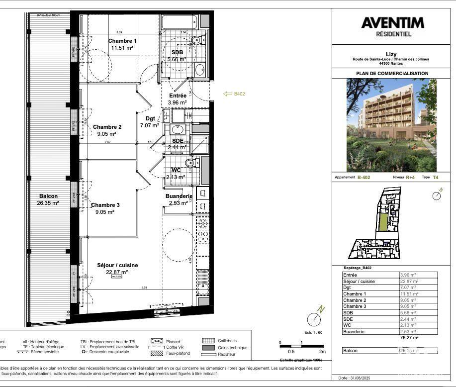 Iad France - Stanley Kollen () vous propose : Au coeur de L’écoquartier Bottière-Chénaie, à deux pas du Tram 1 / C7 Souillarderie, Appartement neuf de 76,27 m² environ avec en bonus un Balcon de 26,35 m² environ, Valeur locative nue : 1050euros soit 3,89% Valeur locative meublée : 1170euros soit 4,24% Type : T4 (3 chambres) Etage : 4e Livraison du programme : 3ème trimestre 2027 Aspects techniques : -L'ensemble immobilier sera raccordé au réseau de chaleur urbain de Nantes -La gamme électrique Dooxie de chez Legrand ou équivalent Radiateurs à eau chaude type Reggane de chez Finimetal ou équivalent. - Le chauffage des salles d’eau sera assuré par un sèche-serviette eau chaude de chez Atlantic ou équivalent - La ventilation des logements s’effectuera au moyen d’une Vmc (ventilation mécanique contrôlée) simple flux hygroréglable. - La résidence sera raccordée au réseau fibre optique. Orientation : Ouest Transport : a deux pas du Tram 1 / C7 arret Souillarderie 15 minutes en tramway de la gare Sncf de Nantes, via la ligne 1, Services de proximité : Boulangerie, pharmacie, marché, restaurants, médiathèque, école, crèches et piscine sont accessibles à pied Performance énergétique : la règlementions Re2020 est surpassée Avantages en Résidence principale : Tva réduite à 5,5 % pour les primo-accédants (sous conditions de ressources) Ptz + cumulable (prêt à taux zéro) Exonération de taxe foncière 2 ans (selon fiscalité locale) Avantages pour investisseurs – Logement Locatif Intermédiaire (Lli – Zone A) - Tva réduite à 10% - Exonération de taxe foncière jusqu’à 20 ans - Acquisition via Sci (Ir ou Is) - Engagement locatif de 15 à 20 ans, loyers & ressources plafonnés - Revenus stables, forte demande locative en zone tendue - Patrimoine durable dans un quartier en pleine évolution L’écoquartier Bottière-Chénaie est le fruit d’un projet de réaménagement urbain ambitieux, transformant d’anciennes terres maraîchères en un espace de vie moderne et écologique. Le quartier est traversé par le mail Haroun-Tazieff, une promenade arborée, et est agrémenté de bassins et d’un canal, favorisant la biodiversité et le bien-être des résidents. Lizy est la dernière opportunité permettant d’Habitez ou investissez dans le neuf à Nantes avec des conditions particulièrement exceptionnelles. Prix si Tva a 5% : 285 000euros Prix si Tva a 20% : 324 171euros Plus de renseignements sur demande. Honoraires d’agence à la charge du vendeur. Bien non soumis au Dpe. Les informations sur les risques auxquels ce bien est exposé sont disponibles sur le site Géorisques : La présente annonce immobilière a été rédigée sous la responsabilité éditoriale de M. Stanley Kollen Ei (Id 58979), mandataire indépendant en immobilier (sans détention de fonds), agent commercial de la Sas France immatriculé au Rsac de Nantes sous le numéro , titulaire de la carte de démarchage immobilier pour le compte de la société France Sas. Retrouvez tous nos biens sur notre site internet. Loi Alur : Honoraires charge vendeur. (Gedeon )