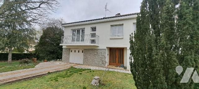 Bouchemaine Une maison d'habitation sur deux niveaux comprenant : - Au rez-de-chaussée : entrée avec placard, deux pièces, wc, dégagement avec placard, garage, chaufferie. - A l'étage : palier, cuisine, séjour salon avec cheminée insert et balcons, dégagement, salle de bains, trois chambres, wc. Jardin clos et arboré.