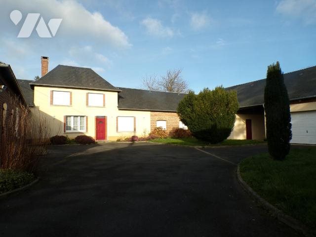 Ancien corps de ferme, rénové, composé : D'une maison à usage d'habitation, comprenant : Au rez-de-chaussée : Entrée sur séjour d'environ 25 m², salon d'environ 21 m² avec cheminée feu de bois foyer ouvert, cuisine aménagée et équipée, bureau, dégagement dess...