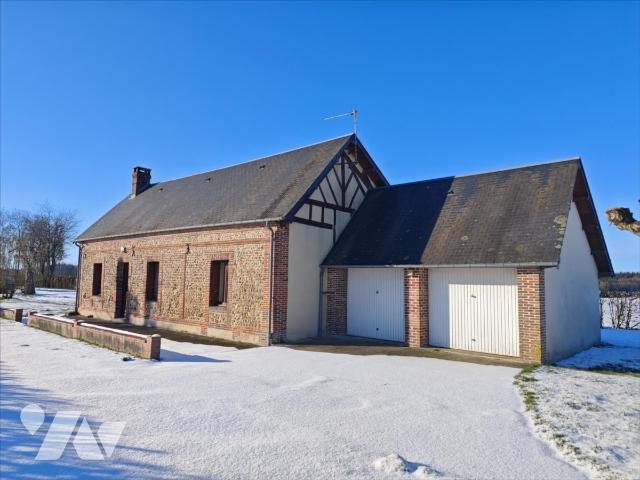 Maison comprenant : Belle salle de séjour avec cheminée ouverte sur la cuisine, couloir desservant trois belles chambres, une salle de bains, wc. Grand garage pouvant accueillir deux véhicules (accessible par la maison). Eau, électricité, chauffage central gaz (citerne enterrée). Terrain clos et arboré sur environ 2500 m².