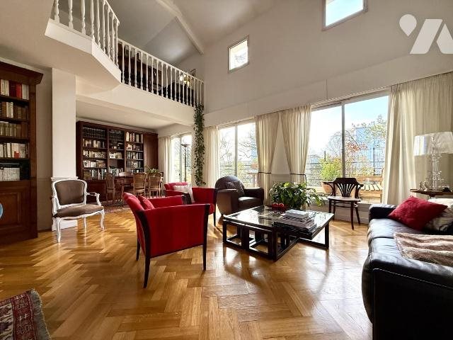 Nantes Proce-Canclaux - A moins de 300 mètres du Chronobus C3 et du Carrefour city, appartement de type T5 Duplex de 147 m² habitables situé au 4ème et dernier étage d'un immeuble bâti dans la fin des années 1980. L'ascenseur sécurisé vous mènera directement dans l'entrée avec placard desservant salon-séjour traversant de 50 m² avec plafond cathédrale prolongé par une terrasse d'environ 23 m² exposée Ouest et son balcon exposé Est, une cuisine indépendante attenante, une buanderie, une chambre avec sa salle d'eau spacieuse et sa terrasse exposée Est de 12 m², des Wc indépendants. A l’étage : pièce palière en mezzanine avec coin bureau, 3 chambres (13,57 m², 13,09 m² et 9,76 m²), salle de bains, Wc, terrasse d’environ 57 m² exposée Sud (communicante avec la terrasse du niveau principal via un escalier extérieur). Garage double et cave attenante en sous-sol, cabanon sur la terrasse de l'étage. Huisseries aluminium double vitrage, chauffage électrique, cheminée. Les informations sur les risques auxquels ce bien est exposé sont disponibles sur le site Géorisques :