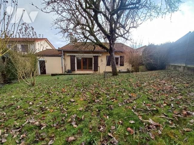 Proche Saint-dizier, Maison individuelle de plain pied comprenant salon-séjour (possibilité insert) avec accès direct sur une terrasse, trois chambres, salle de bains, cuisine meublée, buanderie, garage. Terrain clos.