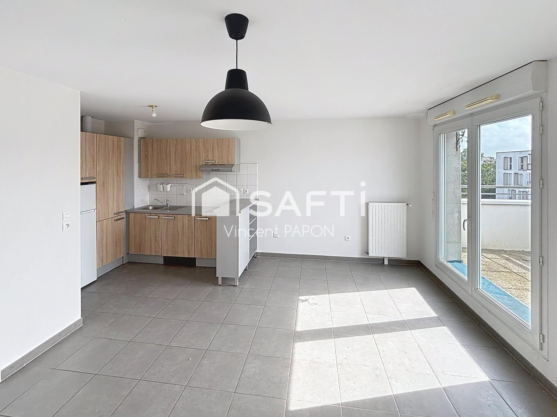 Nantes - Souillarderie Dans résidence de 2014 avec vue sur Nantes, Appartement T3 de 60,26 m² au 5e et dernier étage avec terrasse bois de 11,95 m² offrant calme et luminosité. L’Entrée dessert un séjour spacieux de 27,94 m² donnant sur une agréable terrasse, la cuisine est ouverte et équipée. L’Espace nuit comprend deux chambres 12,48 m² et 9,37 m² avec rangements, une salle de bains et des Wc séparés. Proche des commerces, écoles et transports. Parking couvert Chauffage ind. Gaz Charges : 187,63 €/mois T. Foncière : 1 256 €