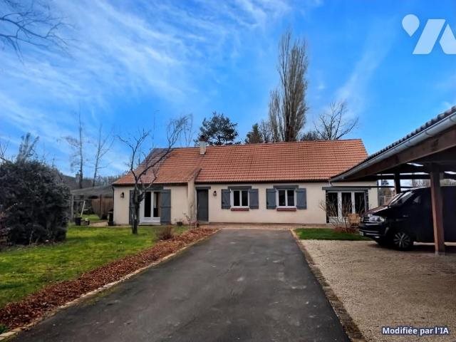 Belle maison comprenant: entrée grand salon salle à manger, cuisine équipée avec verrière donnant sur la salle à manger, 3 chambres, 1 salle d'eau neuve, cellier, pièce de jeux, grenier. Terrasse - jardin clos - grand carport Chauffage radiateurs électriques ...