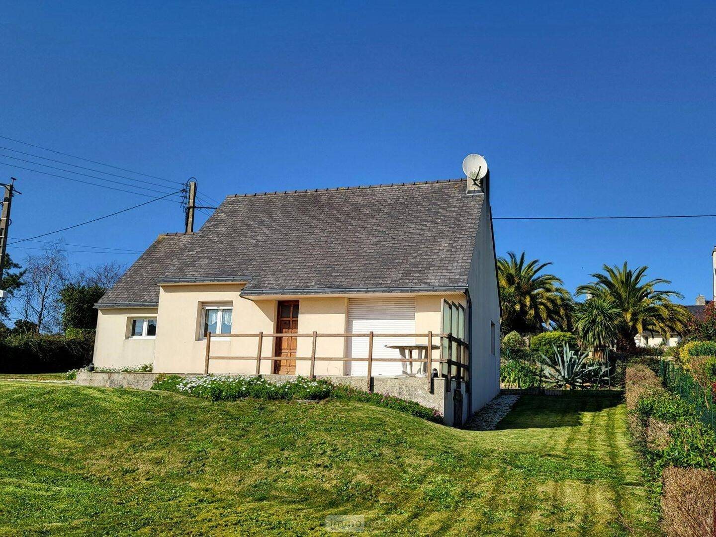 Maison à vendre à Roscoff (29680) - Quartier calme de Poul Brohou - Vue Baie de Morlaix - Maison individuelle comprenant entrée avec placard, séjour/salon sur grande terrasse au Sud, cuisine équipée, une chambre, salle de bains, WCGarage attenant. Grenier aménageable. (Permis de construire pour agrandissement obtenu et purgé).
