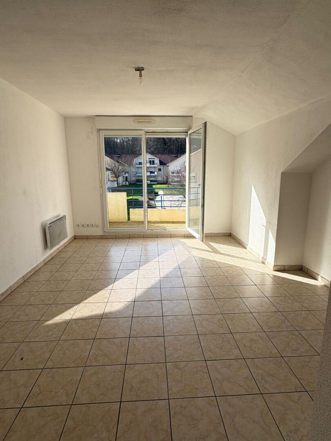 Appartement F3 à Creutzwald avec balcon !. A proximité du centre ville de Creutzwald, à louer au deuxième étage d'une résidence avec piscine commune, appartement de type F3 comprenant : - une entrée, - une cuisine semi-équipée ouverte sur le salon disposant d'un balcon, - deux chambres avec placards, - une salle de bains, - un wc Une place de parking complète ce bien ainsi qu'une piscine commune ! Chauffage électrique DPE en cours de réalisation