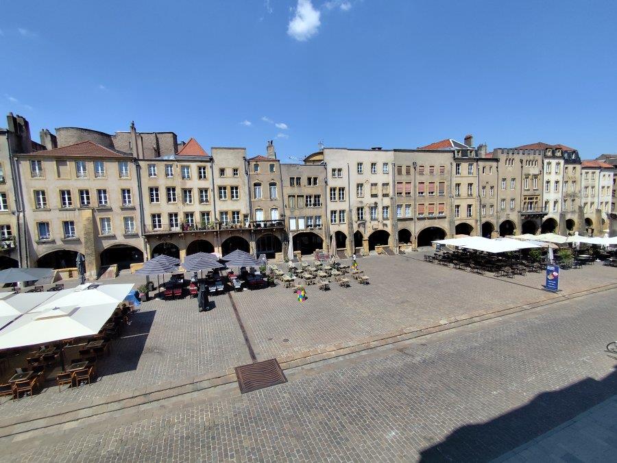 Appartement ou Bureau - F3 Metz hypercentre ville, à 5 minutes de la gare à pieds. Situé Place Saint-Louis, en face des arcades. Appartement entièrement rénové en 2025. Le marché de Noël sous les fenêtres, des animations en été, un très bel endroit où vivre. Place animée avec de nombreux restaurants et activités organisée par la ville. Un emplacement idéal pour un couple actif ou de jeunes retraités. Vous assistez aux concerts et théâtre de rue depuis votre fenêtre. Boulangerie à 10 mètres. 5 magasins alimentaires dans un rayon de 200 mètres. 3 pièces (98,5 m2 Carrez) 1 grande entrée avec placard 1 grand salon avec cuisine ouverte, très lumineux (48 m²), exposé ouest, double vitrage antibruit 2 chambres sur cour, très calme (double vitrage, volets électriques) 1 salle d'eau avec douche neuve 1 wc séparés, buanderie. Vue dégagée sur la place (voir photo) Chauffage électrique (électronique huile) Réseau électrique, isolation et peintures refaits à neuf Eau chaude : ballon électrique Large cage d'escalier, sans ascenseur Porte d'entrée sécurisée Internet : fibre optique Entrée avec code interphone. Parking Coisling à proximité avec possibilité d'abonnement annuel : 115 Eur/mois. Accès véhicule libre le matin de 6h à 11h jusque devant la porte d'entrée. Bornes pour voitures électriques disponibles sur le parking. Charges de copropriété : 70 Eur / mois environ. Agences, s'abstenir.