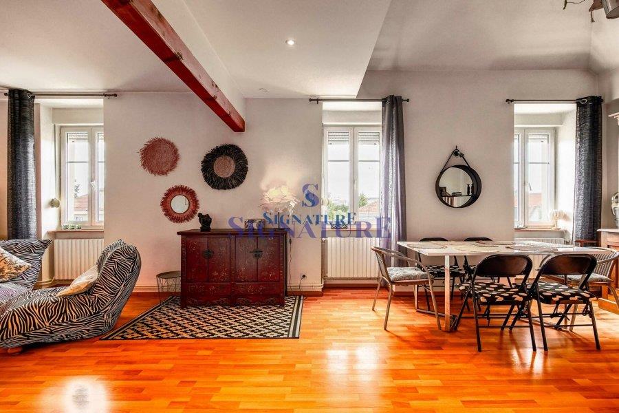 Collection "Automn-Hiver" Metz-Queuleu 10 min à pied Metz-Gare / Centre-ville (Proximité Parc de la seille) Au deuxième étage d'une petite copropriété de charme, Appartement Duplex (120m2 sol/83m2 carrez) comprenant au premier niveau : Une entrée, une cuisine aménagée, un salon - salle à manger, une chambre, une salle de douche, un w-c. Aux combles: Deux chambres, une mezzanine, une salle de bains et w-c. Au sous-sol: Une cave. Chauffage individuel gaz - Climatisation. Taxe foncière: 1.020€ Dpe : D Copropriété : 3 lots Charges mensuelles : 110€ Pas de procédure en cours. Etat des risques consultable sur CABINET Signature : . L'immobilier a du caractère !!! Ref agence :