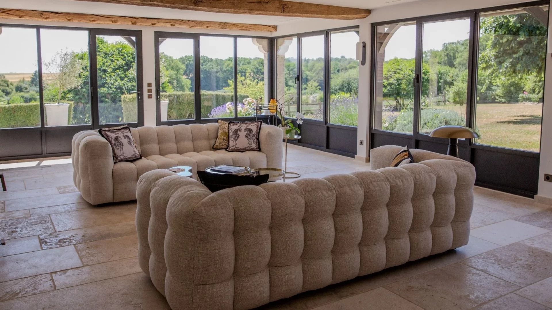 Implantée à proximité d’un village, cette demeure de 300m² environ allie espace, confort et charme. Elle se constitue au premier niveau, d'une entrée, d'un vaste salon ouvert sur le jardin, d'une cuisine entièrement aménagée, d'un jardin d'hiver, d'un espace de vie comprenant le salon et sa cheminée ouvert sur une salle à manger et une terrasse, d'un bureau et d'une suite complète comprenant une chambre, un dressing et une salle de bains avec douche. Une buanderie et deux toilettes invités complètent ce rez-de-chaussée. Le premier étage offre un grand espace de vie, deux chambres et une salle d'eau avec toilettes. Le sous-sol, accessible depuis le salon offre une magnifique cave à vin. Une annexe réaménagée en maison d'amis propose une salle de sport ou salle de jeux avec une suite complète, soit une grande chambre avec sa salle d'eau et toilettes. Le jardin bénéficiant d'une vue panoramique est complété par un cabanon de jardin, un atelier et un petit plan d'eau. La demeure a été totalement réimaginée par une architecte d'intérieur et restaurée avec des matériaux de grande qualité. Rare.