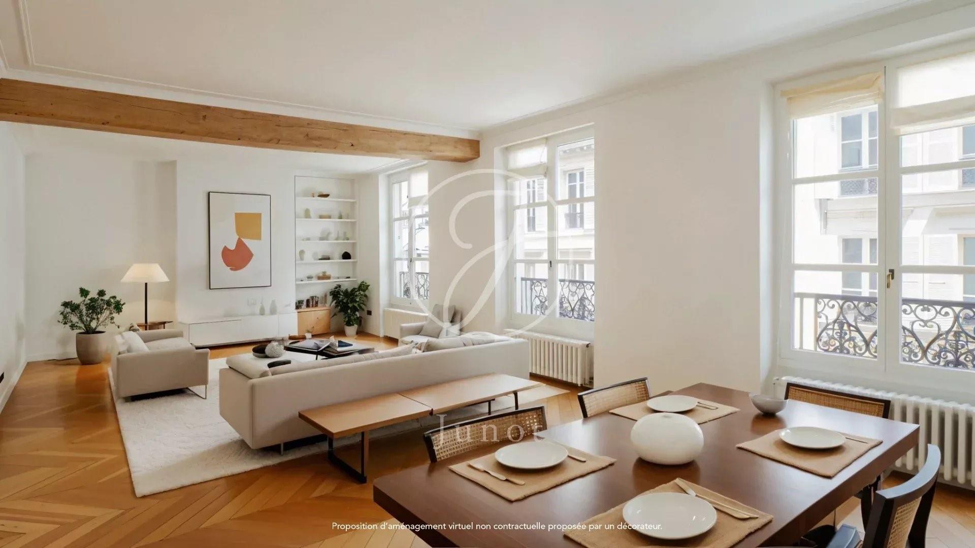 À deux pas de la place de l'Odéon et du jardin du Luxembourg, au troisième étage avec ascenseur d'un immeuble ancien du 17ème siècle avec gardien, l'appartement se compose d'une entrée, d'un vaste double séjour, d'une chambre avec rangements au calme d'une cour arborée, d'une cuisine dinatoire, d'une salle de douche avec toilettes. Possibilité de création de seconde chambre. Triple exposition, cheminée, une cave complète ce joli bien calme et ensoleillé.