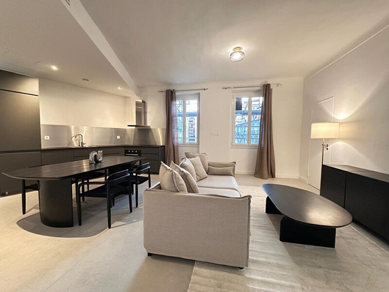Carré d'Or. Rue de Rivoli. 3 pièces entièrement rénové, loué meublé. Au 2ème étage par escaliers d'un immeuble niçois. Exposé ouest sur cour au calme. Appartement lumineux et proche de toutes les commodités. Il est composé d'une spacieuse pièce de vie de plus de 33 m² avec une cuisine entièrement équipée (plaque induction, hotte aspirante, four, réfrigérateur et congélateur, lave vaisselle, lave linge), de deux belles chambres de 12,3m² et 13m² avec des penderies/rangements ainsi que d'une salle de douche avec toilette. Double vitrage et climatisation réversible dans toutes les pièces.
